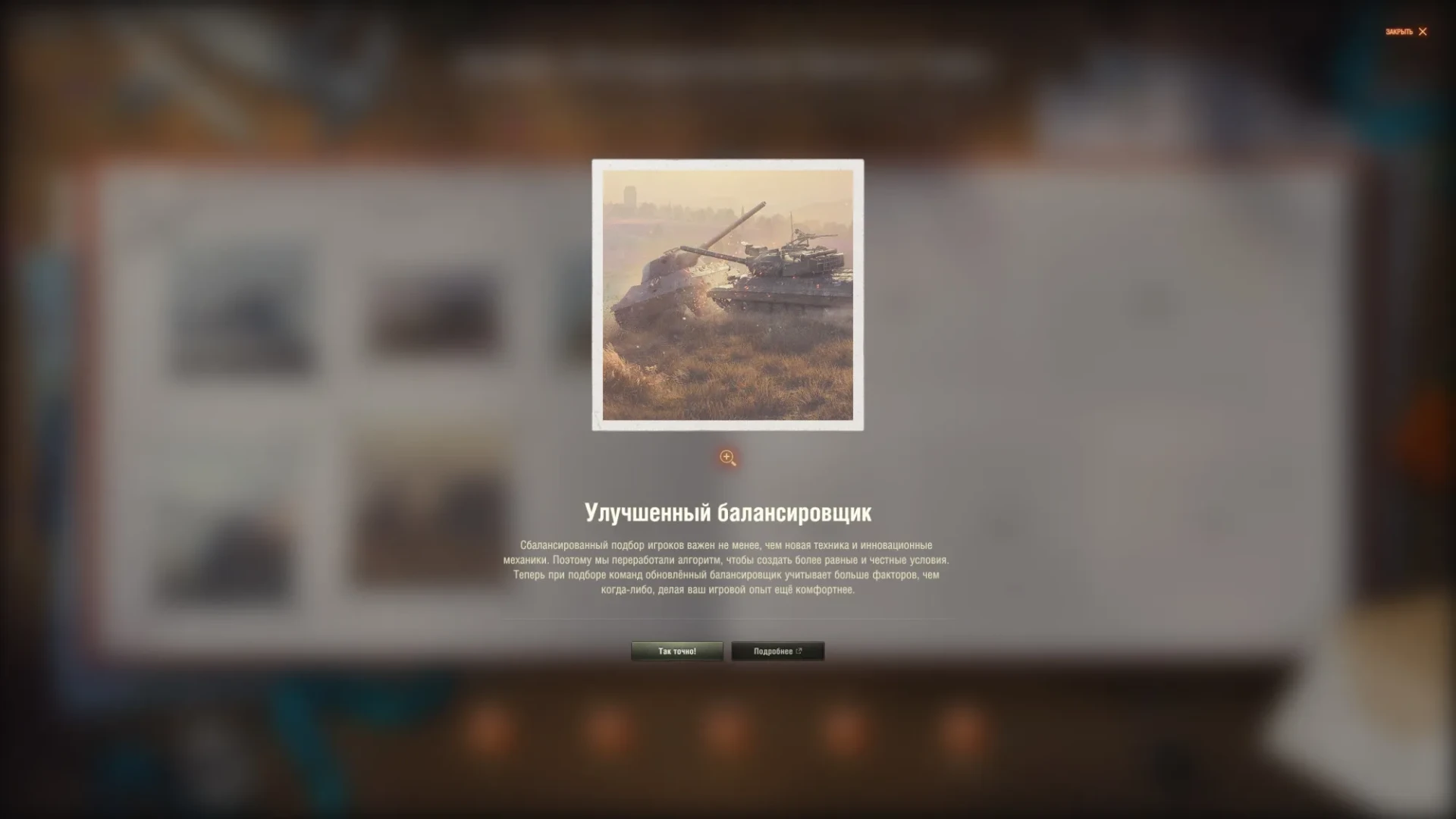 Сбалансированный подбор игроков важен не менее, чем новая техника и инновационные механики. Поэтому мы переработали алгоритм, чтобы создать более равные и честные условия. Теперь при подборе команд обновлённый балансировщик учитывает больше факторов, чем когда-либо, делая ваш игровой опыт ещё комфортнее.