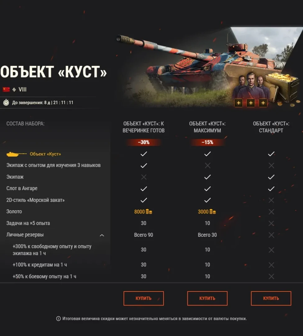 А также присмотритесь к предложениям с VIII Nemesis, VIII Объект «Куст», VIII Škoda T 56 и другими игровыми ценностями далее в статье.