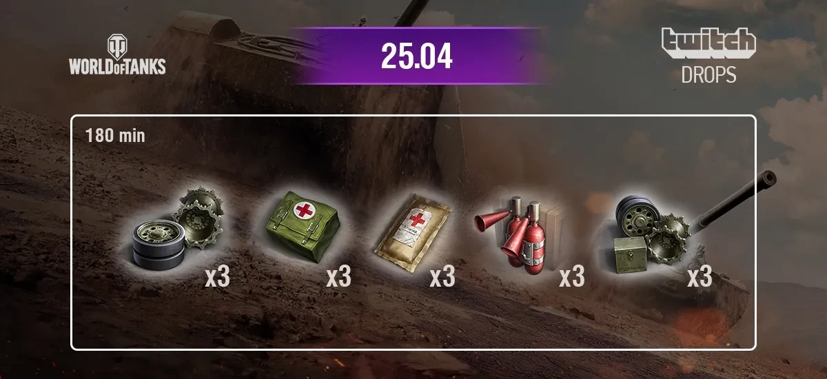 25 апреля в 19:00 (UTC+3) заходите на официальный канал World of Tanks или канал любого из семи участвующих стримеров, чтобы заработать гарантированные апрельские и эксклюзивные Twitch Drops.