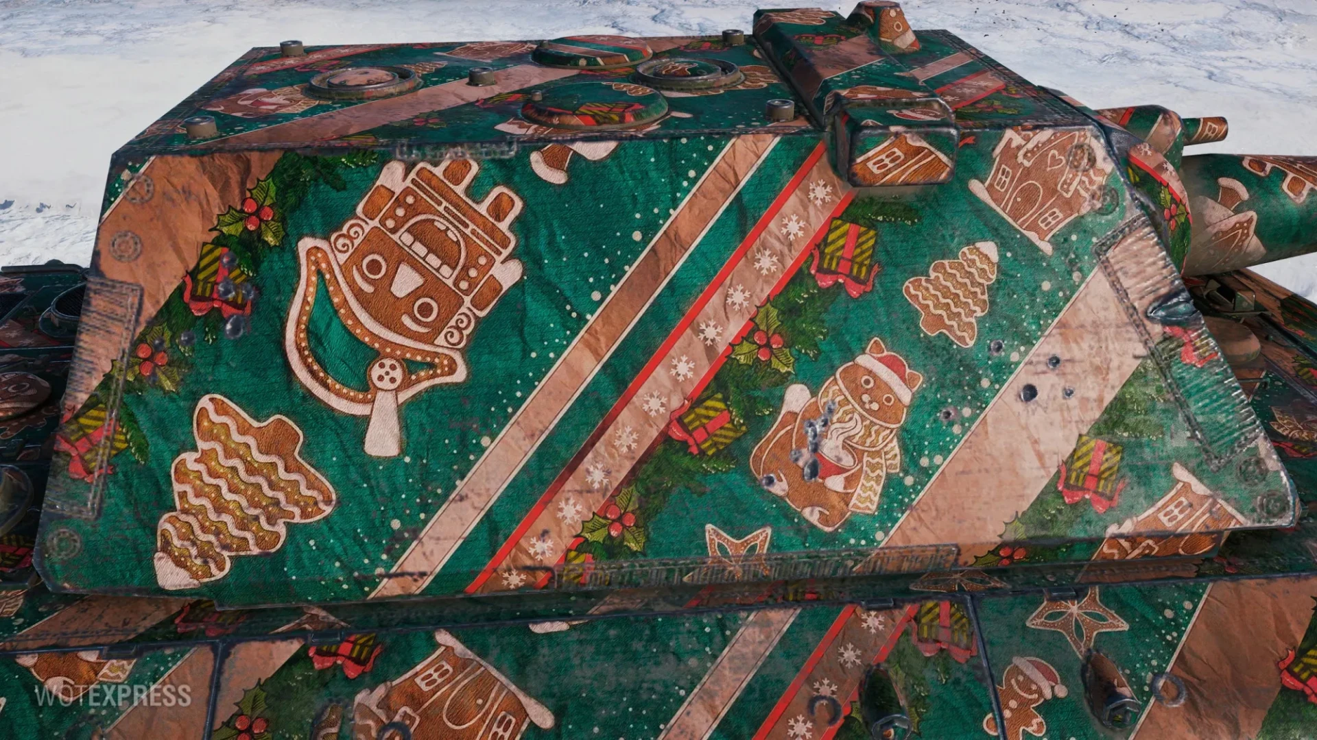 «Леденцы? На месте. Праздничные венки? Здесь. Пряники? Тоже тут. И ещё, обязательно не забыть уголь для непослушных детей! О, и конечно подарки, куда ж без них. Но вот какое дело — эти сани, ну не знаю. Не моё это. В смысле, лететь по небу в свете полной луны, наверное, ужасно круто и всё такое, но я предпочитаю что-то попроще, что-то... помощнее. Вот это по мне. Огромный, стальной, с отличной пушкой. Что, недостаточно празднично? Ладно, давай замотаем его в какую-нибудь красочную обёртку. Ну, бывай, счастливых праздников».