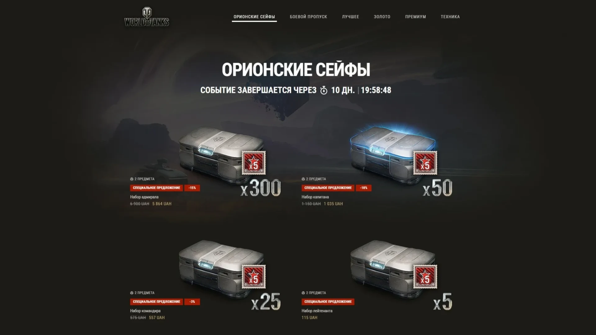 Орионские лутбоксы Вы можете приобрести со 2 мая, 11:00 по 13 мая, 07:00 (GMT+3) — как в Премиум магазине, так и в игровом клиенте (Магазин ==> Орионские сейфы).