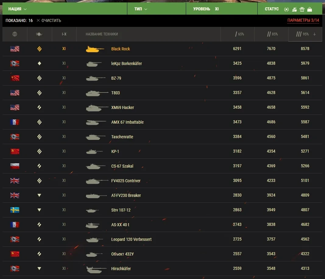 Прошло почти 2 недели (13 дней) с момента выхода 2.0 WoT, и мы можем финальное взглянуть на показатели 3 отметок на 16 новых танках 11 уровня.