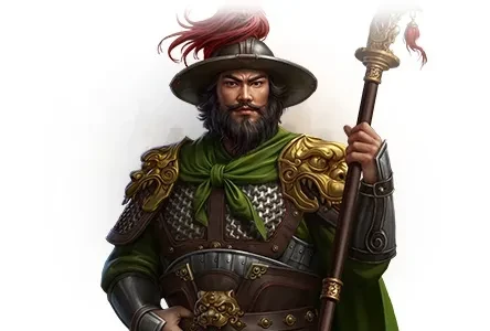 Главный из пяти Тигровых генералов Шу Хана. Краснолицый, статный воин ростом в девять чи. Был хорошо известен своей верностью, праведностью, доброжелательностью и отвагой. Он поклялся пройти через все трудности вместе со своими братьями и ценил своего господина превыше славы и богатства. Его знали одновременно как храброго бойца и образованного учёного, и за эти достоинства его прославляли все последующие поколения.