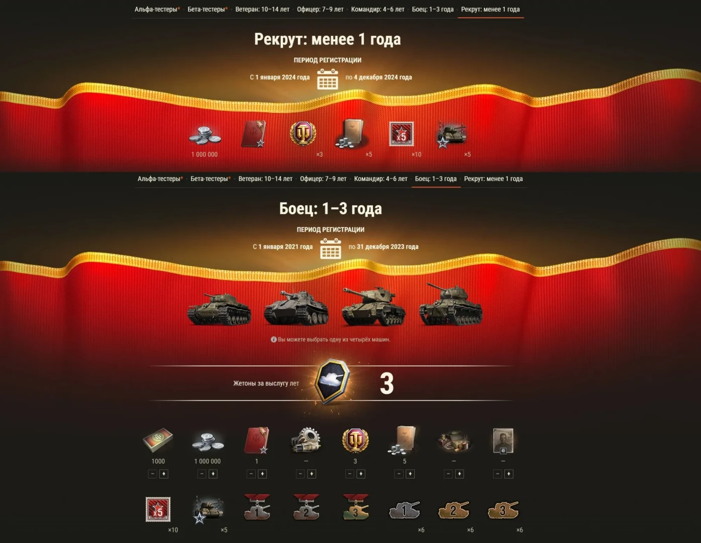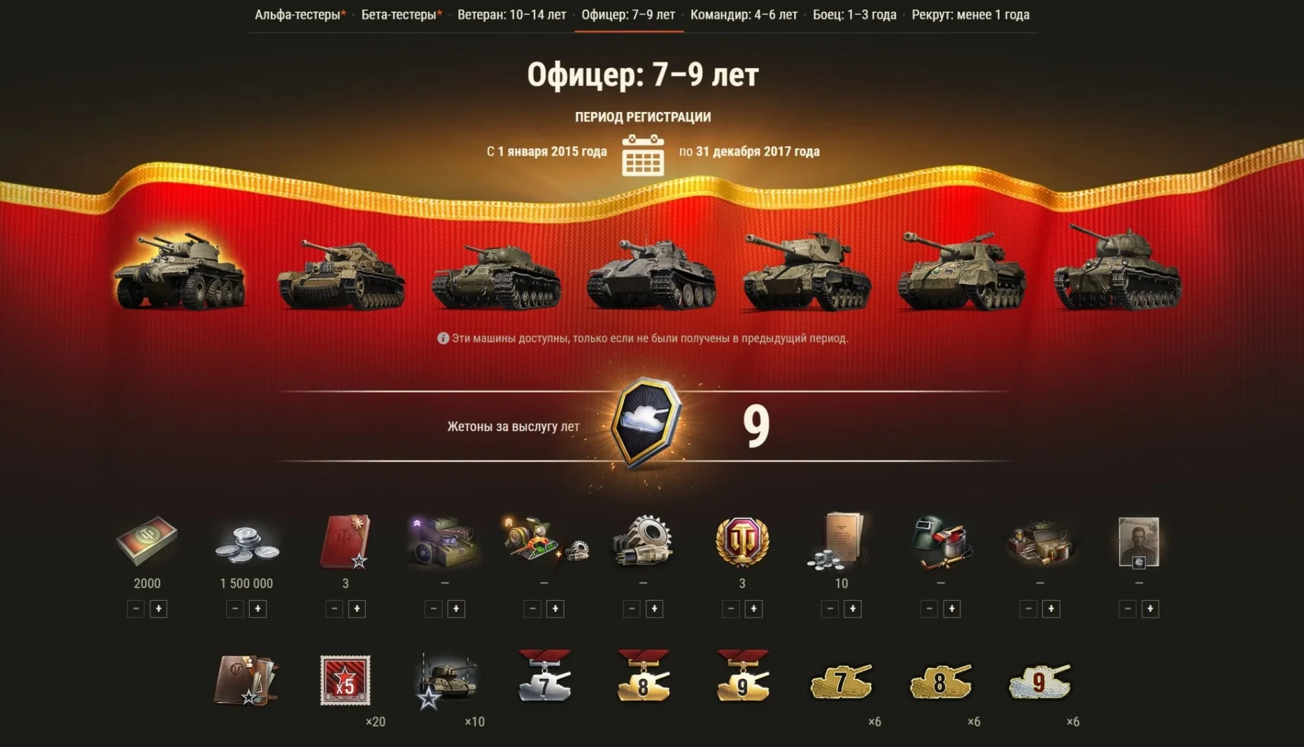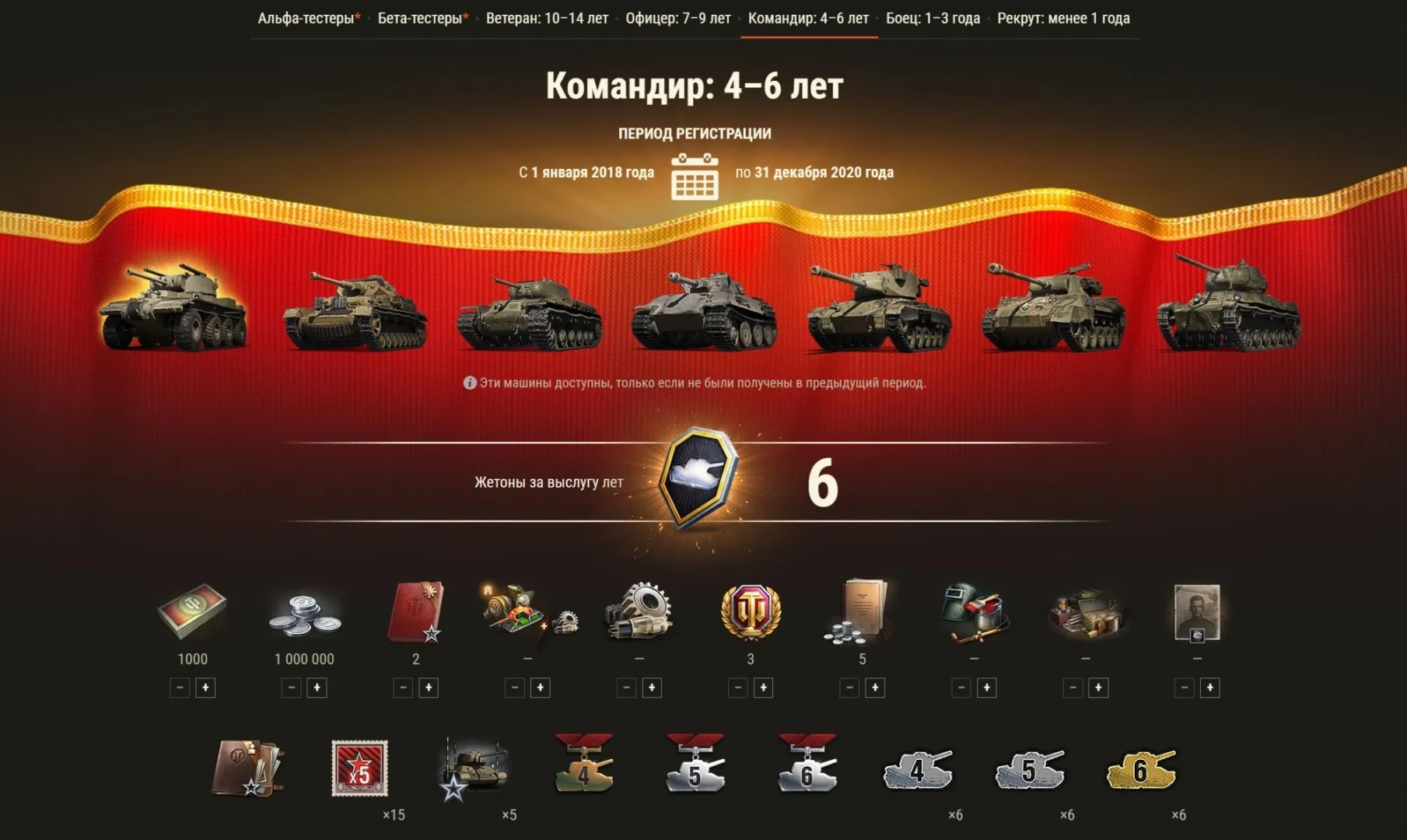 - Командир: 4–6 лет. [Даётся новый танк этого года]