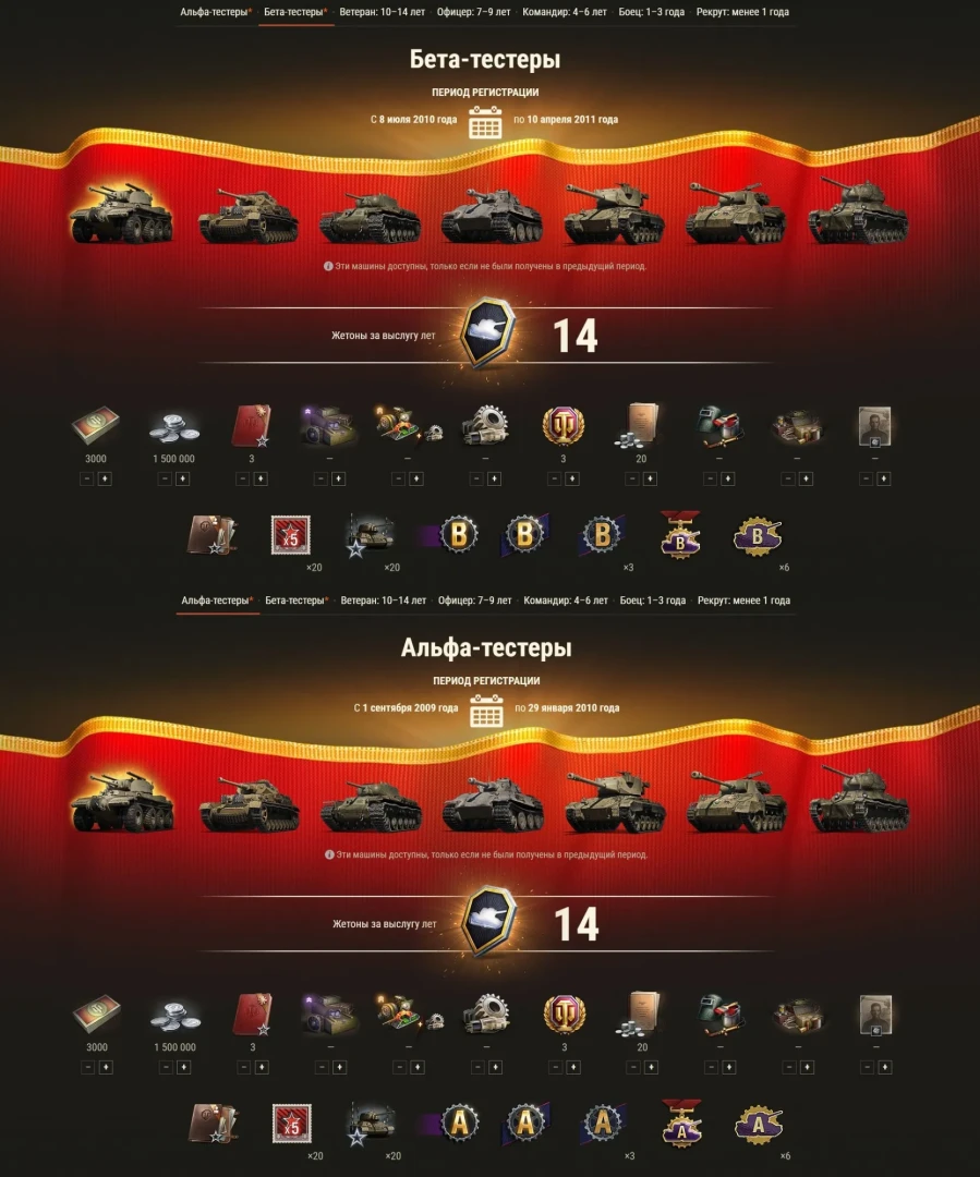 - Ветеран: 10–14 лет и альфа/бета-тестеры.
