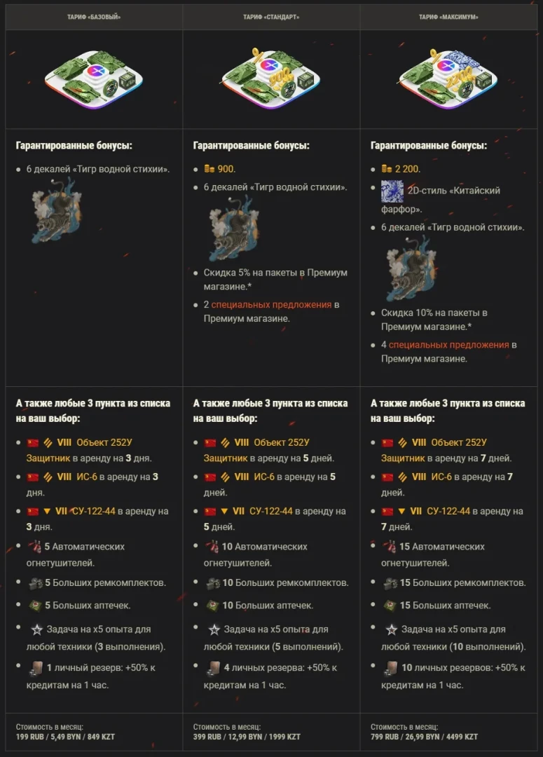 Техника, элементы кастомизации, спецпредложения и член экипажа (когда он есть) в подписке обновляются 1-го числа каждого месяца.