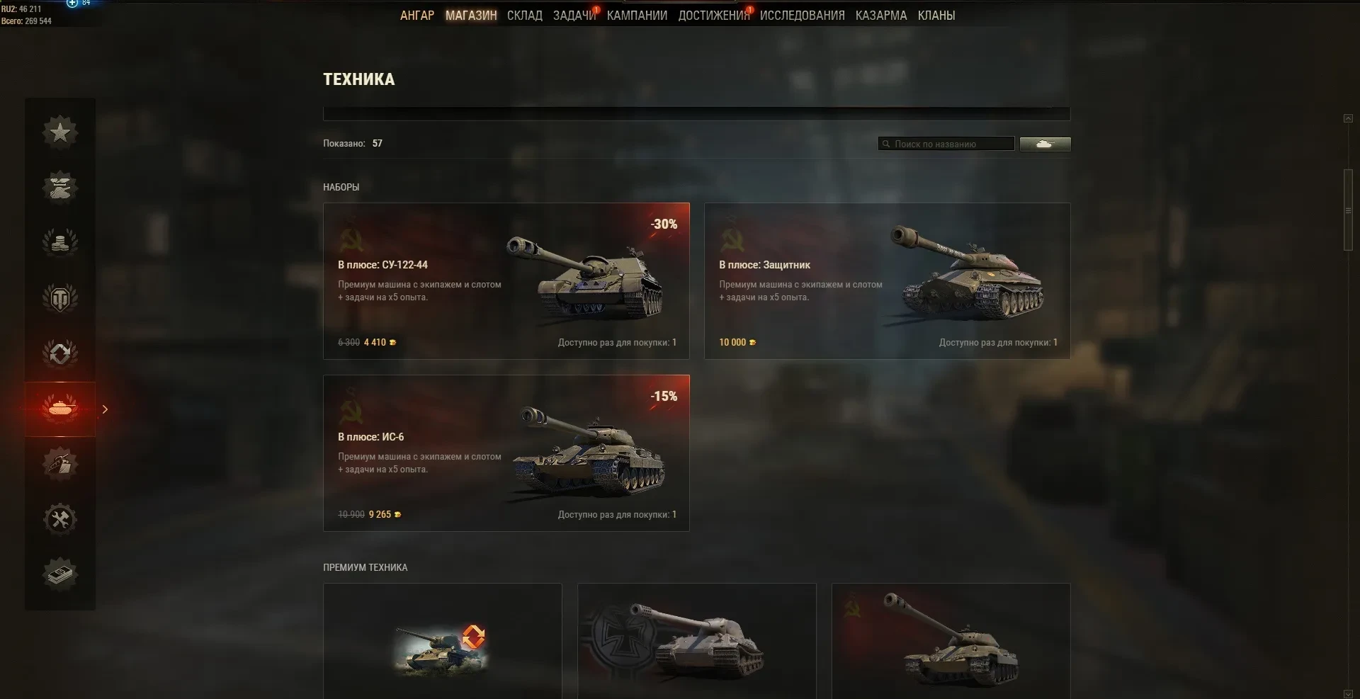 - Игровое золото, арендные премиум танки, элементы внешнего вида и не только.