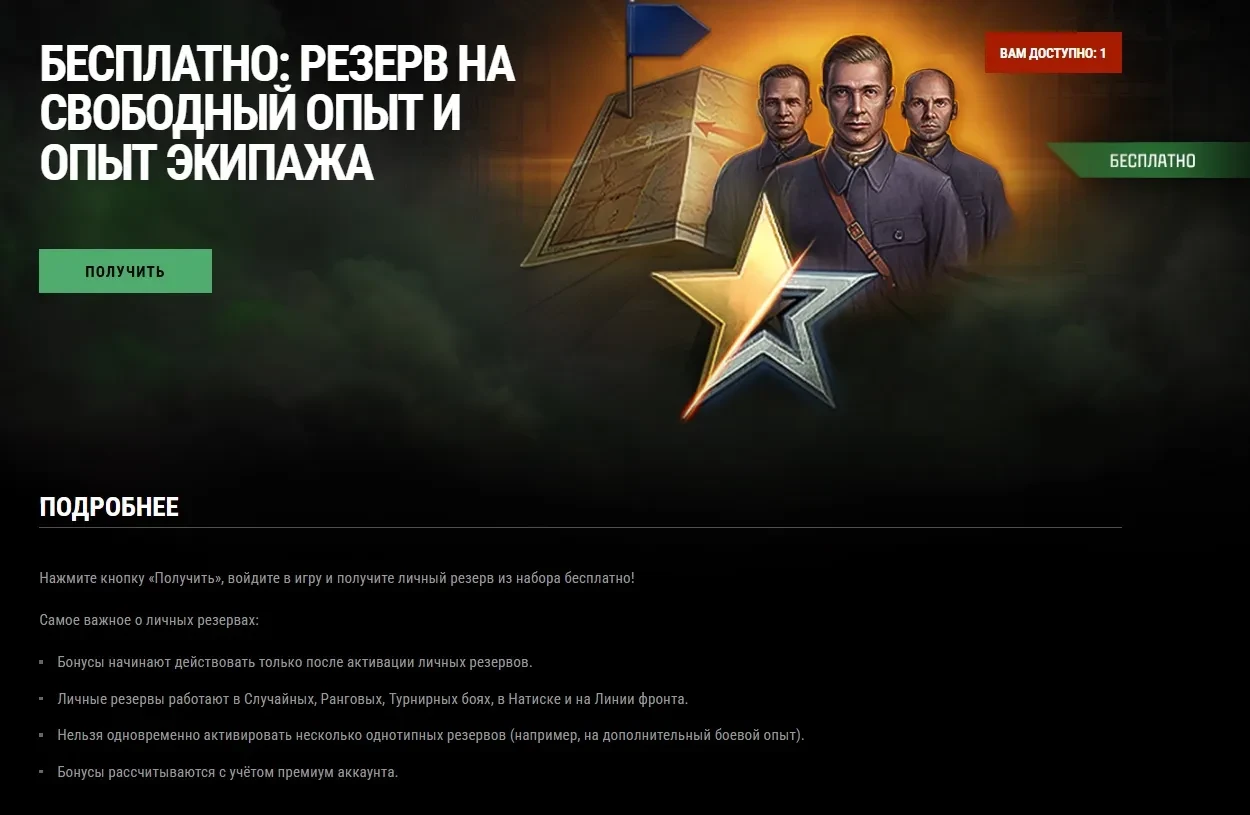 Бесплатный резерв на свободный опыт и опыт экипажа в Премиум магазине.