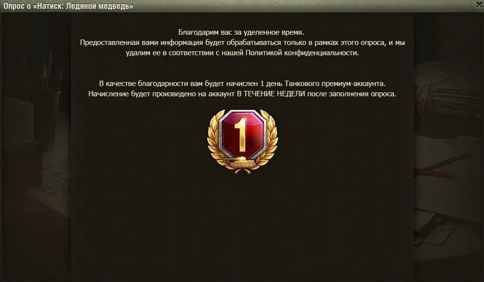 Начал приходить опрос о «Натиск: Ледяной медведь».