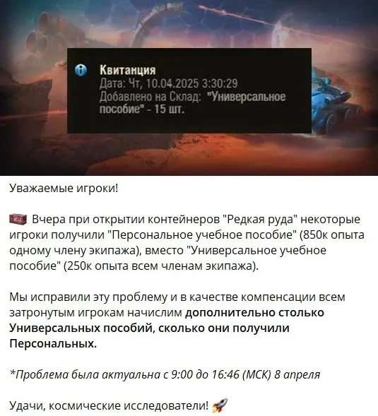 Начислили компенсацию за косяки с начислением учебных пособий из контейнеров "Редкая руда".