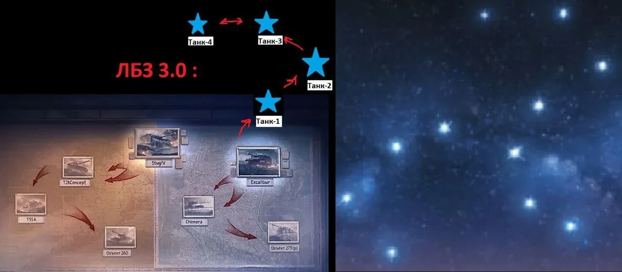 Один из подписчиков нашел схожесть карты ЛБЗ по расположению с расположением звезд (наверное только экскалибур выбивается из картинки, но это может быть и ошибка автора).