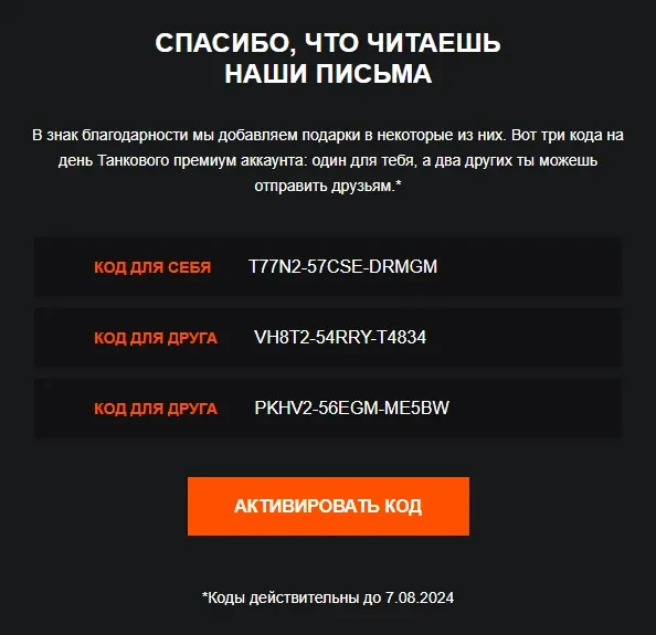 Проверяем почту, дают 1 день танкового премиум аккаунта.