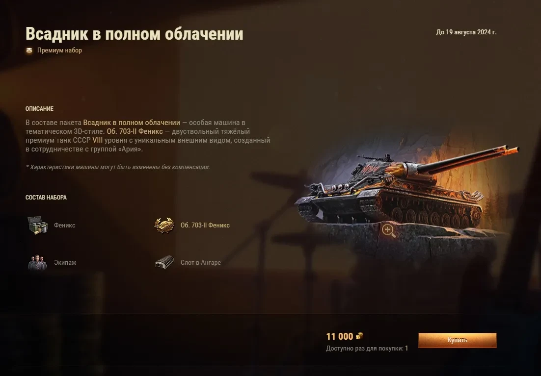 Самое важное в этом запуске, что до 19 августа во внутриигровом магазине можно купить танк Об. 703-II со стилем Феникс за ГОЛДУ.