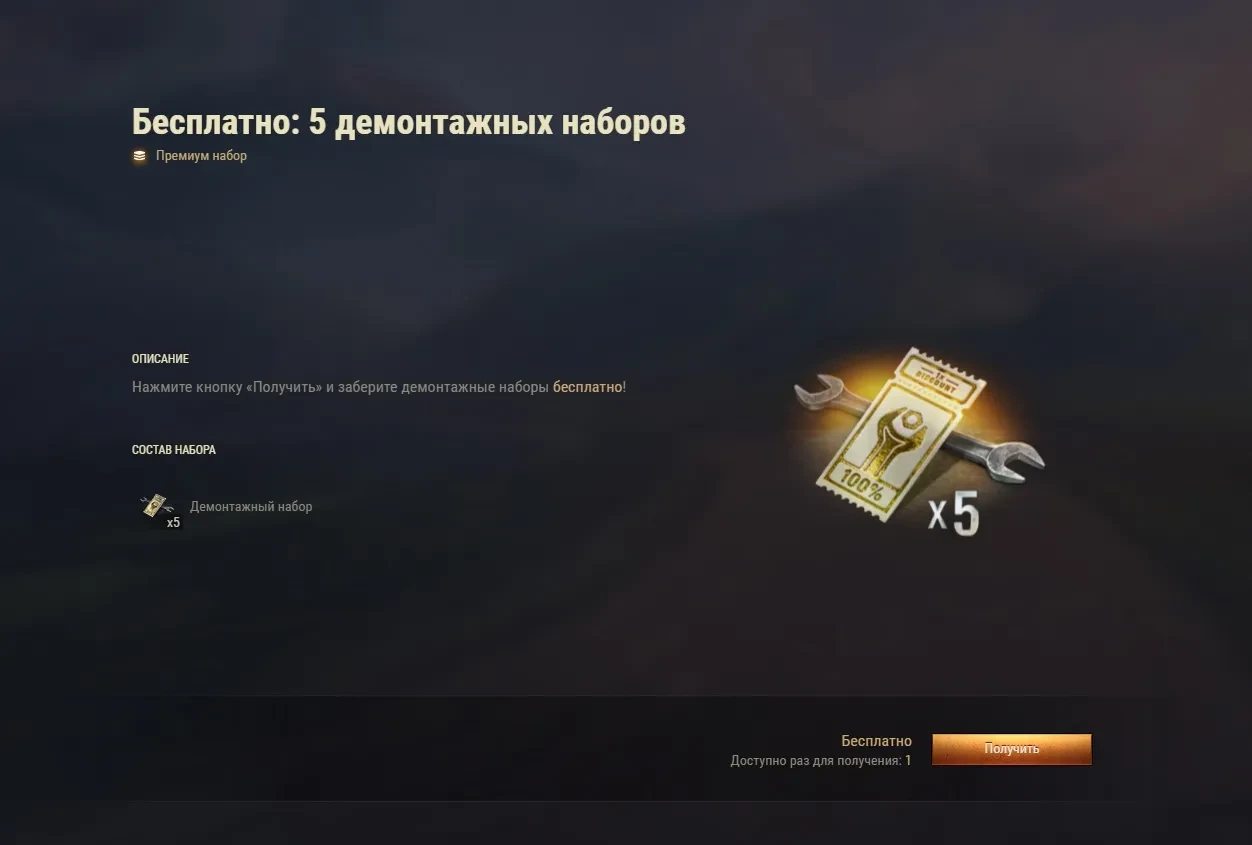 Во внутриигровом магазе можно забрать на халяву 5 демонтажных наборов.