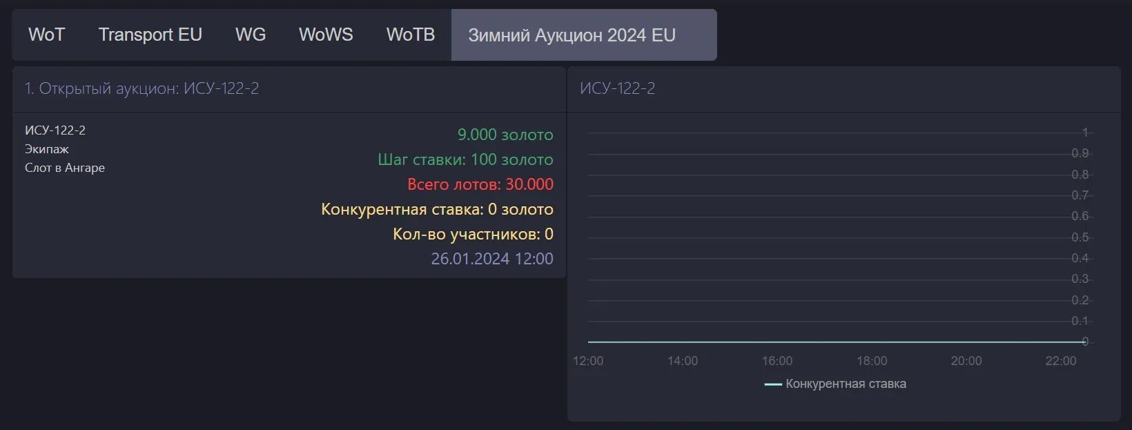 Сайт мониторинга аукциона онлайн (WoT EU): wgstatus.com/au2024_eu