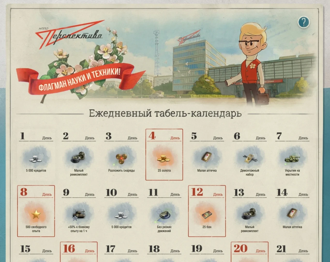 Табель-календарь Мира танков. Бонусы каждый день.