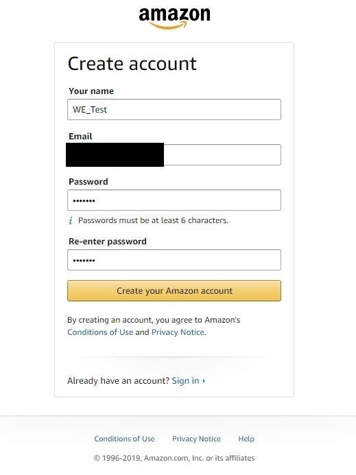 5) На ново странице жмём снизу: «Create your Amazon account».
