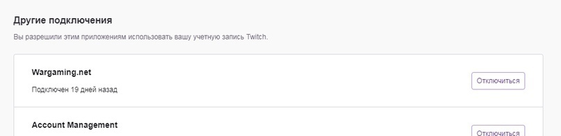 — Это значит Вы не отвязали прошлый (старый) аккаунт твича. Если отвязку уже сделали в WG ЛК от старого/первого Твича, далее следует также отменить свою связь уже в самом старом акке Твича.