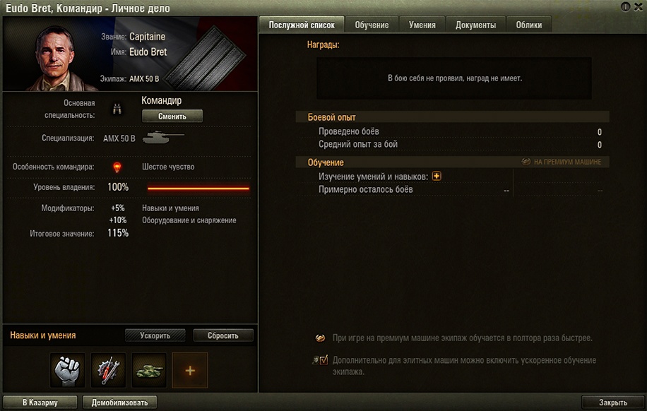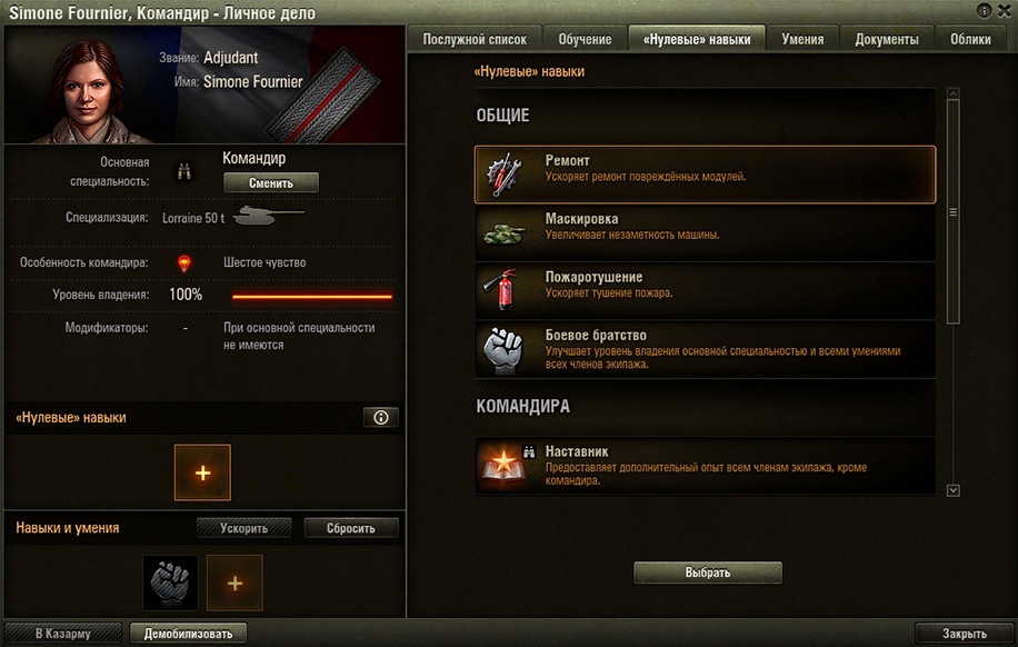 a) В интерфейсе экипажа особенность командира и «нулевые» умения/навыки будут отображаться отдельно.
