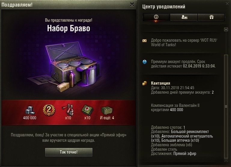 А вот пакет «Браво» пока всё ещё можно заполучить себе на аккаунт ДО 31 марта 2019 года 08:00 МСК.
