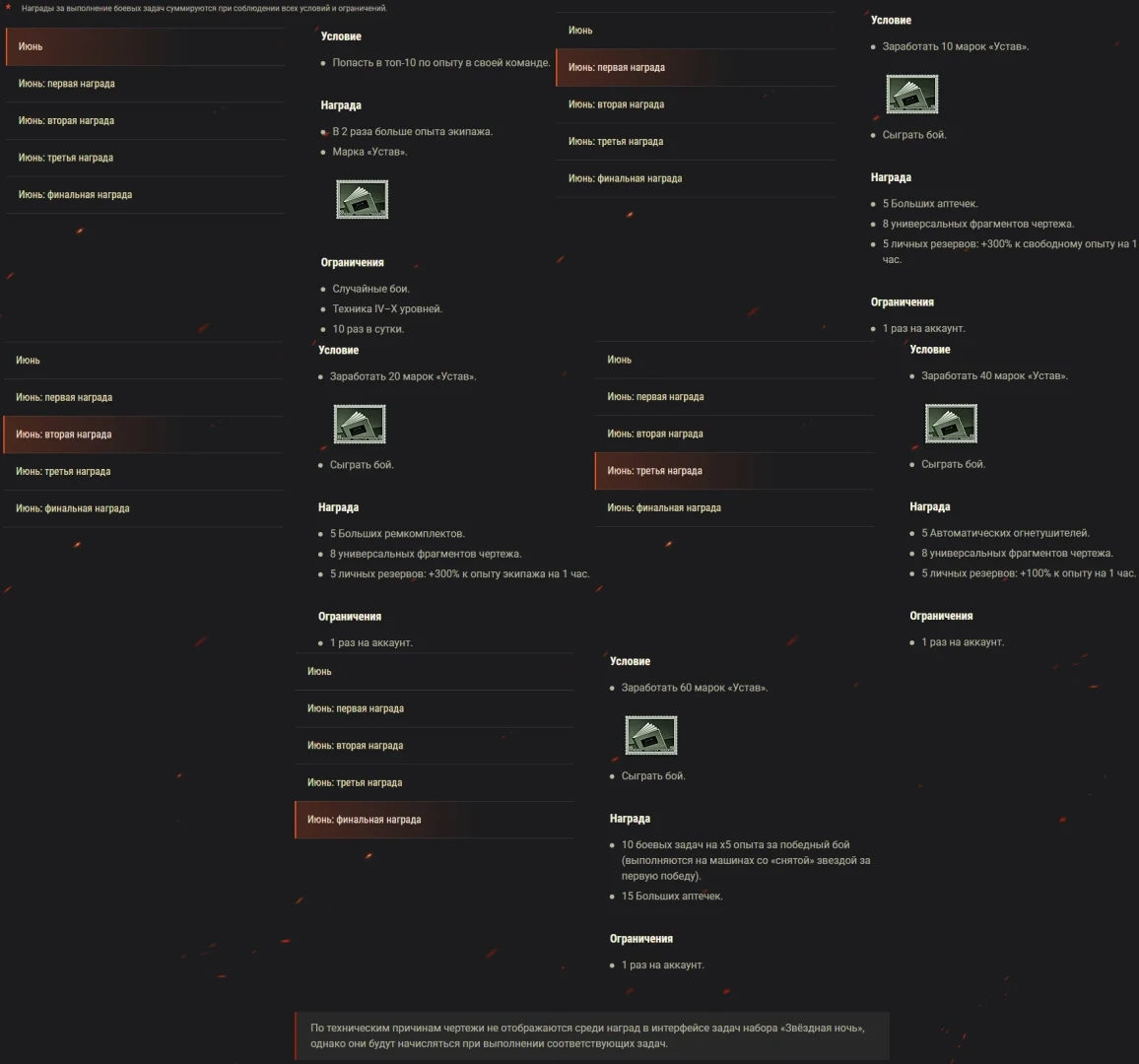 *** По техническим причинам чертежи не отображаются среди наград в интерфейсе задач набора «Июнь, однако они будут начисляться при выполнении соответствующих задач.