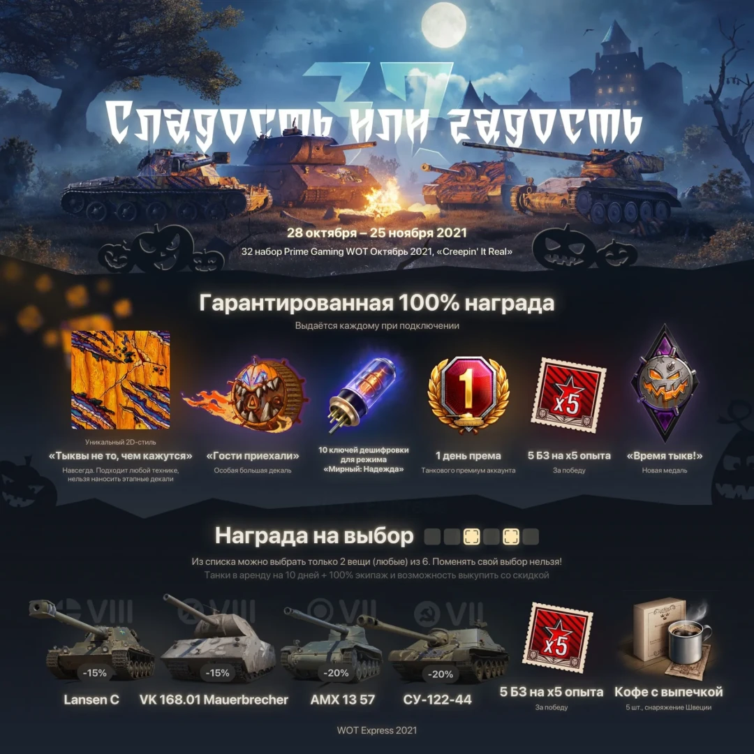 Вышел 32 набор «Сладость или гадость» Prime Gaming World of Tanks