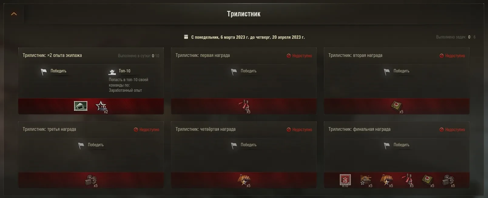 *** Задачи доступны до 20 апреля 2023 г. 14:00 (МСК). Обнуление задач происходит каждый день. Награды за выполнение боевых задач суммируются при соблюдении всех условий и ограничений.