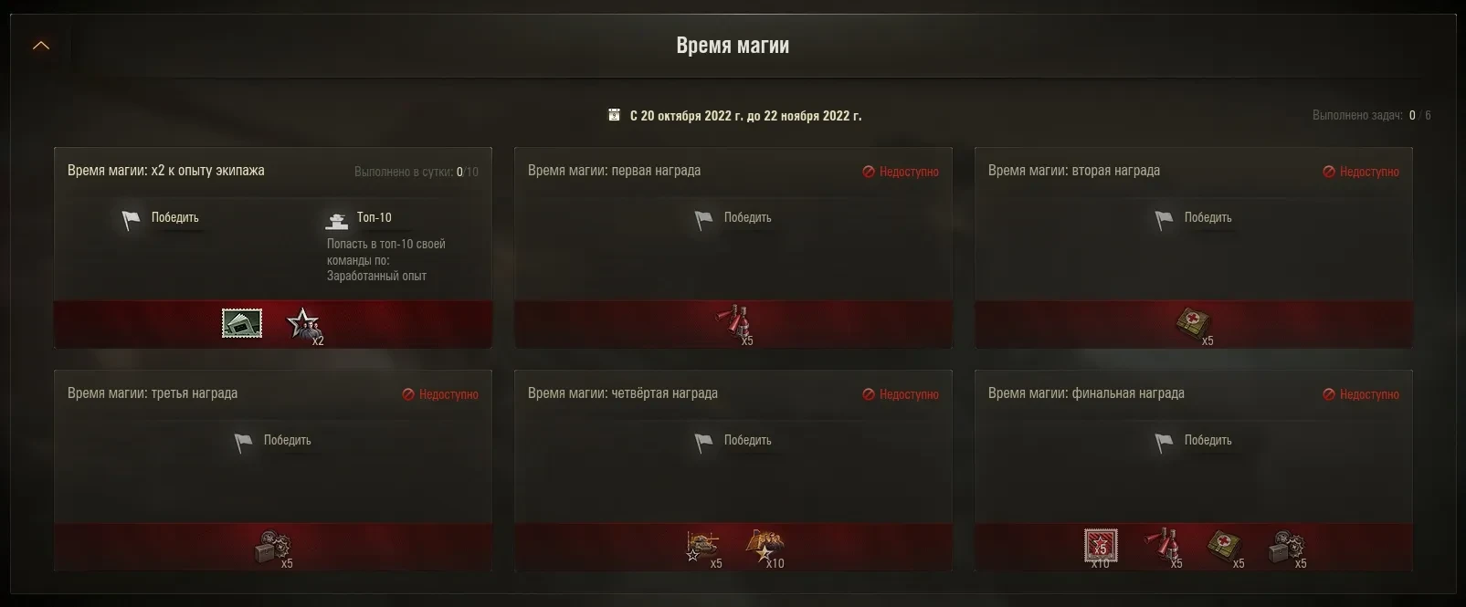 *** Задачи доступны до 22 ноября 2022 г. 13:59 (МСК). Обнуление задач происходит каждый день. Награды за выполнение боевых задач суммируются при соблюдении всех условий и ограничений.