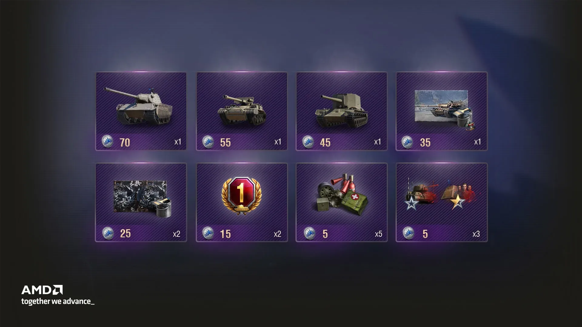 Смотрите трансляции матчей на Twitch, чтобы зарабатывать жетоны для Магазина жетонов AMD OLS. Там вас будут ждать интересные награды, в том числе премиум техника, элементы внешнего вида и многое другое.