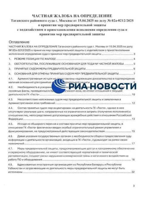 Представители "Леста Игры" обжаловали решение суда о наложении ареста на активы компании и связанных с ней юрлиц, следует из копии жалобы, имеющейся в распоряжении РИА Новости.