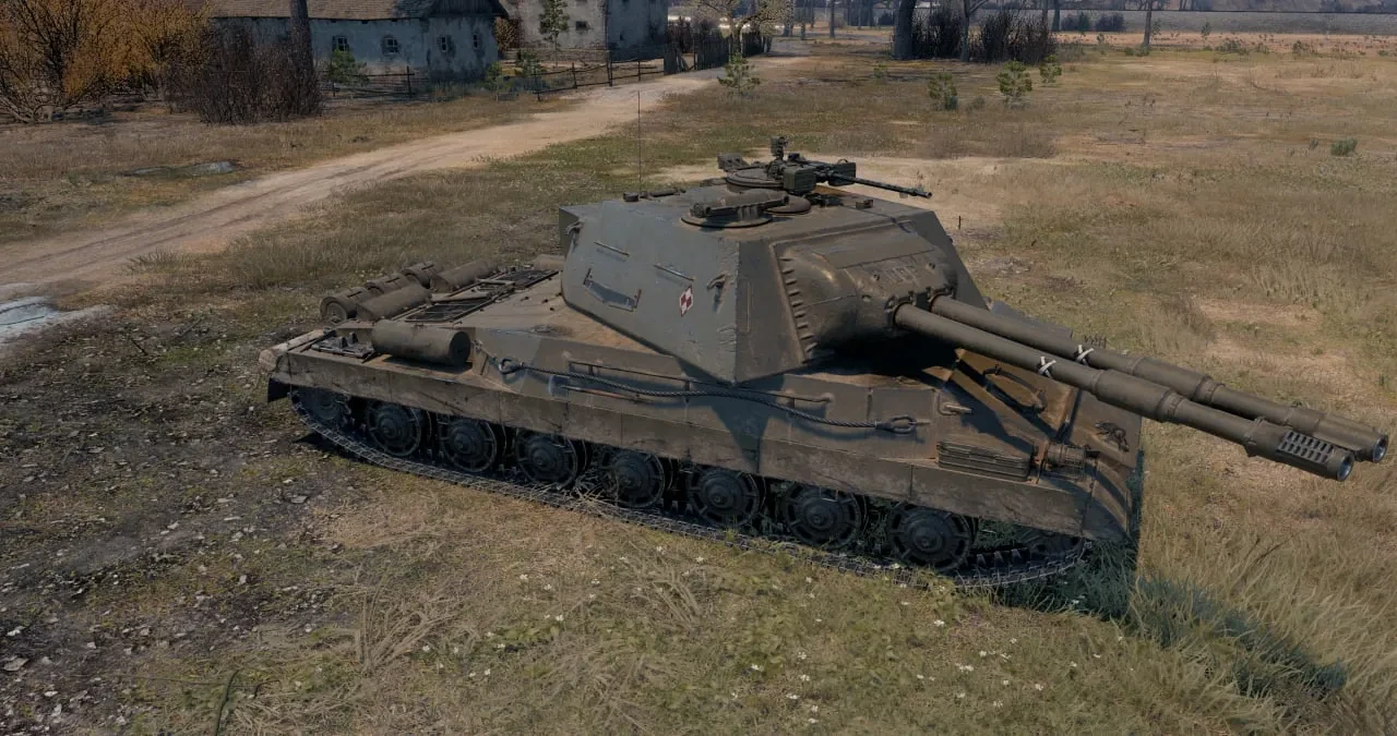 "После окончания Второй Мировой войны Польша осталась практически с неприкрытым побережьем Балтийского моря, поэтому командование военно-морского флота задумалось о создании танка береговой обороны, который мог бы вести огневую дуэль с кораблями противника. Для повышения мощности секундного залпа танк было предложено сделать двуствольным, а для размещения большого боекомплекта разработали объёмную сварную башню с развитой кормовой нишей для дополнительных снарядов. Для повышения скорострельности каждое орудие было оснащено механизированным досылателем, а обслуживал его отдельный заряжающий. К сожалению, данная машина дальше эскизного проекта не продвинулась, так как береговая артиллерия стала проигрывать в эффективности противокорабельным ракетным комплексам."