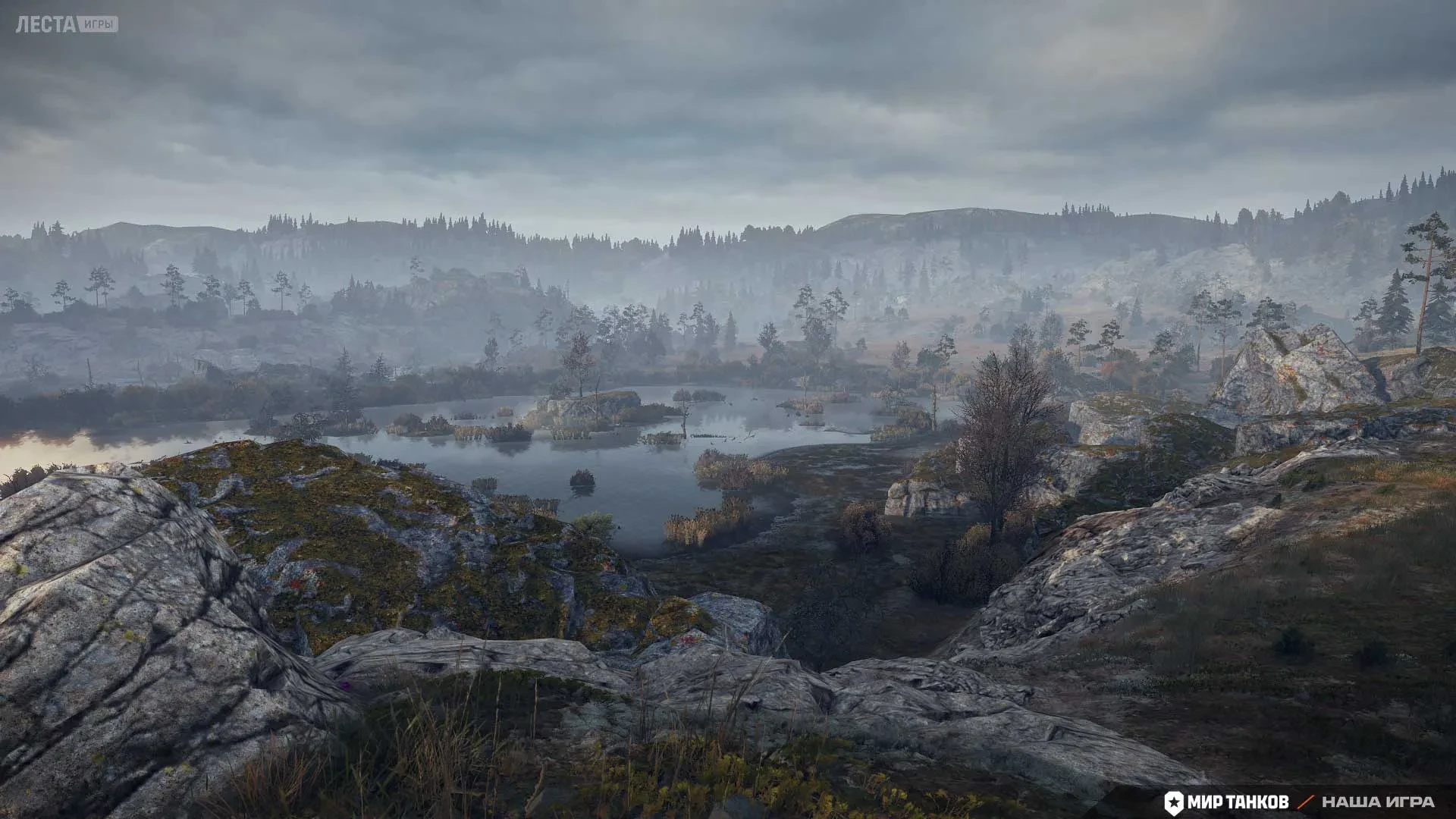 "Этот вариант освещения добавляет новое состояние погоды, вдохновлённое реальными пейзажами Карелии. Лёгкая туманная дымка и холодное свечение усилят ощущение таинственности, создавая иной, но не менее захватывающий образ знакомой местности."