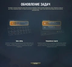 - Режимы выполнения: теперь задачи можно выполнять не только в Случайных боях (в т.ч. в Генеральном сражении) и Натиске, но и в Ранговых и Клановых боях (Вылазки и Укрепрайоны).