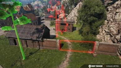 Убран забор и растительность, что снижает излишнюю маскировку и убирает возможность стрельбы из-за забора.
