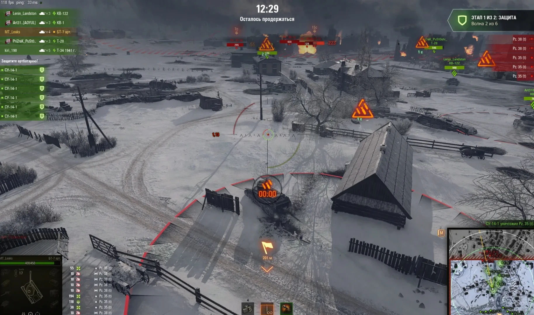 - Нужно было защищать арту, но она и сама себя неплохо защитила, когда к ней проехал вражеский ЛТ. Пока живы вражеские артнаводчики игра не дает стоять. Постоянно попадаешь под артудар и приходится очень быстоо сниматься с места, буквально за две секунды.
