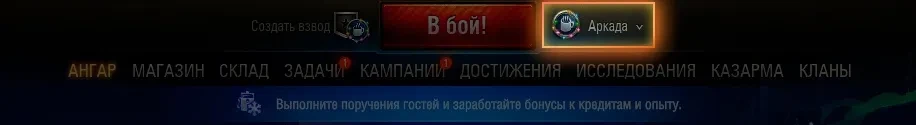 Вы можете выбрать режим Аркада через меню выбора режимов или специальное окно в правом нижнем углу вашего Ангара.