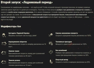 - Бонусы Новогоднего наступления к опыту и кредитам применяются к боям в запусках «Игра в снежки» и «Ледниковый период».