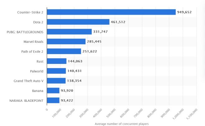 у меня нет статистики по всем крупным играм и изменениям онлайн.