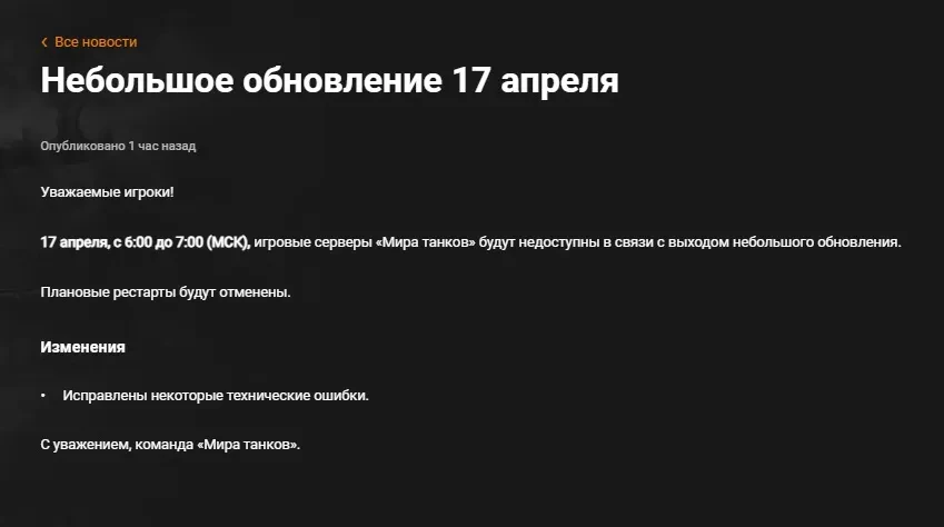 Завтра (17 апреля) с 6:00 до 7:00 мск серверы будут недоступны. Может наконец-то починят общий чат и контакты?